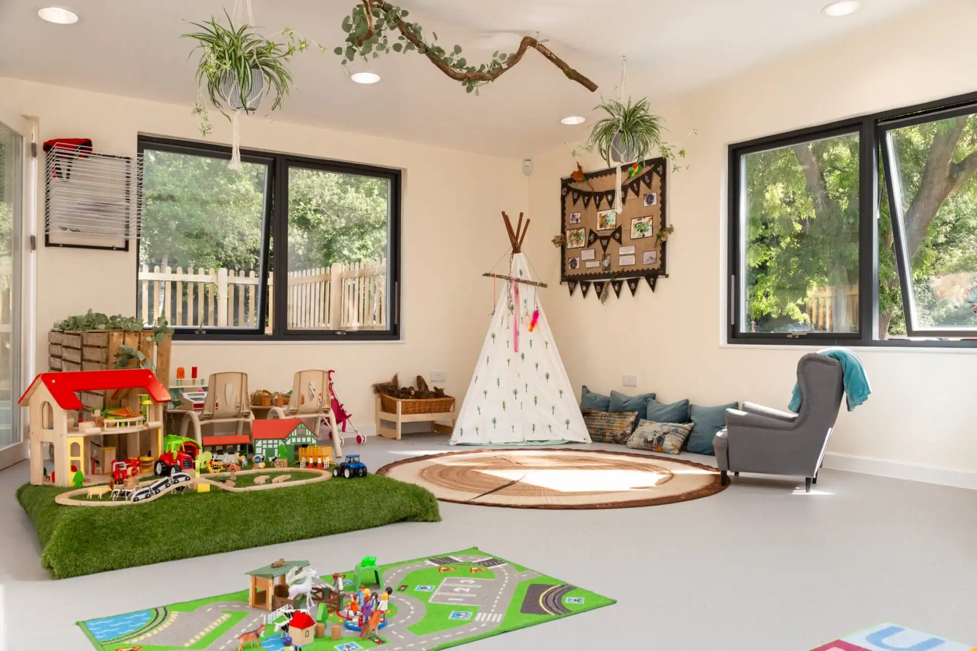 Our spacious lodge has been carefully designed to meet the needs of your little explorers. As well as a secure, private garden and play park, we also have a full-spec kitchen on-site where our team prepare fresh, healthy snacks for hungry tummies.